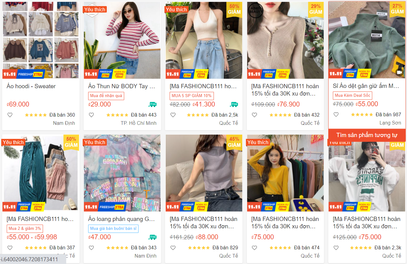 Quần áo thời trang hoặc phụ kiện thời trang là mặt hàng được các cô nàng săn đón nhiệt tình trên mọi mặt trận, chỉ cần lựa chọn mẫu hàng hợp lí thì khả năng lợi nhuận là rất lớn. Bạn có thể bán các mặt hàng như áo phông, áo sơ mi, chân váy, áo khoác… Hoặc có thể bán những mẫu unisex, freesize phù hợp với cả nam và nữ. Những mặt hàng dễ mặc và đo lường kích cỡ sẽ giúp khách hàng dễ định hình hơn, tránh trường hợp nhầm lẫn size đáng tiếc. Tuy nhiên mua quần áo online thỉnh thoảng có thể gặp những ztình huống trớ trêu như nhầm màu, nhầm mẫu, sản phẩm không giống hình… Thế nên không phải mặt hàng thời trang nào cũng có thể kinh doanh được trên Shopee.