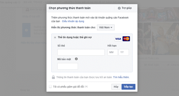 Điền thông tin thanh toán – Cách chạy quảng cáo Facebook