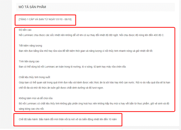 Mô tả sản phẩm là một phần rất quan trọng nên bạn cần mô tả một cách chi tiết đặc biệt là tính năng nổi bật của sản phẩm và đừng “sao chép” từ nơi khác bỏ vào. Khách hàng thường sẽ xem phần đầu và phần cuối nên hãy chú trọng những thông tin trong đoạn mô tả sản phẩm này. Khi nội dung ở Shopee của bạn hay, tốt và tối ưu thì sản phẩm của bạn có thể đứng thứ hạng cao trên Google.